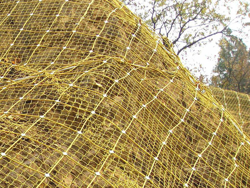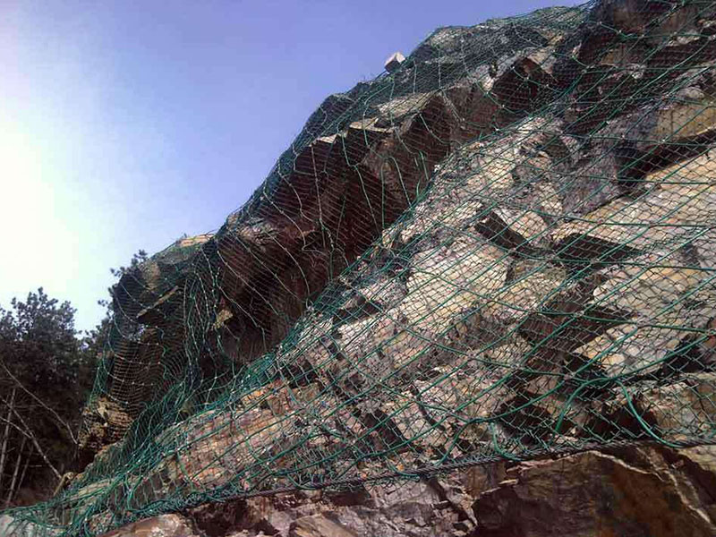 我公司生產的浸塑邊坡防護網都是PE浸塑的,可以有效的保護鋼絲繩不被腐蝕,達到雙層防腐的效果。使用壽命可達30-50年。